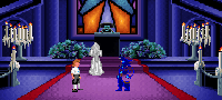 Go inside the church, and you will see LeChuck about to get married. After the priest has spoken, and the pirate's legs have ran past the screen, stop the wedding. The twist in the plot will develop, and you will end up on the end of LeChuck's fist!